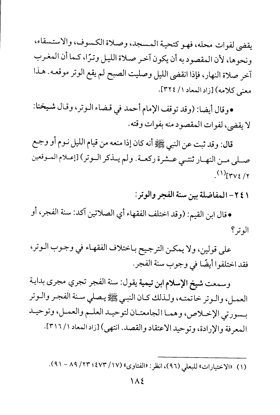 241 - المفاضلة بين سنة الفجر والوتر:
