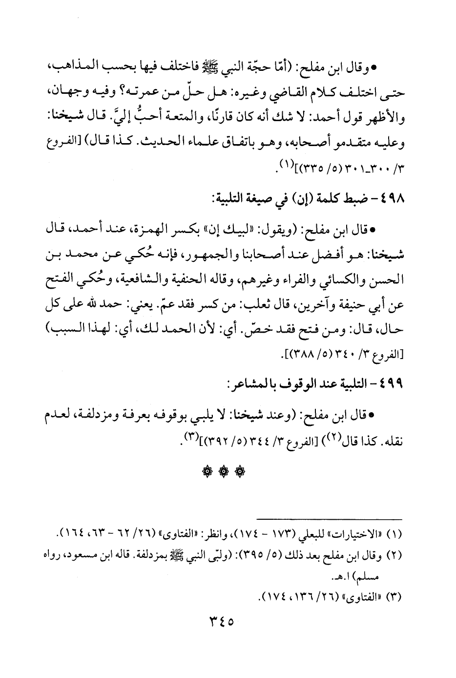 (¬2) وقال ابن مفلح بعد ذلك (5/ 395): (ولبّى النبي - صلى الله عليه وسلم - بمزدلفة. قاله ابن مسعود، رواه مسلم) ا. هـ.
