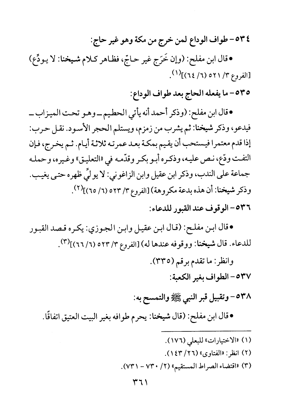 • قال ابن مفلح: (وإن خَرَج غير حاجّ، فظاهر كلام شيخنا: لا يودِّع) [الفروع 3/ 521 (6/ 64)] (¬1).