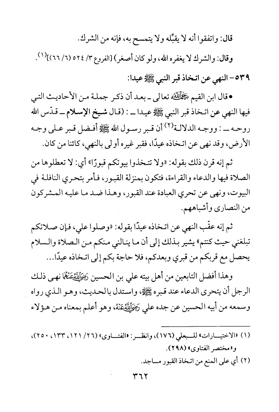 539 - النهي عن اتخاذ قبر النبي - صلى الله عليه وسلم - عيدا:
