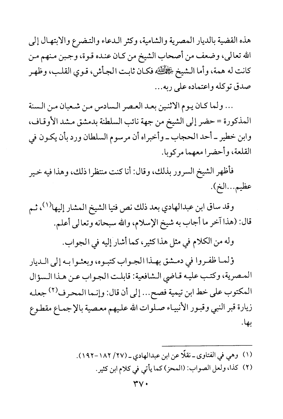 هذه القضية بالديار المصرية والشامية، وكثر الدعاء والتضرع والابتهال إلى الله تعالى، وضعف من أصحاب الشيخ من كان عنده قوة، وجبن منهم من كانت له همة، وأما الشيخ رحمه الله فكان ثابت الجأش، قوي القلب، وظهر صدق توكله واعتماده على ربه. . .