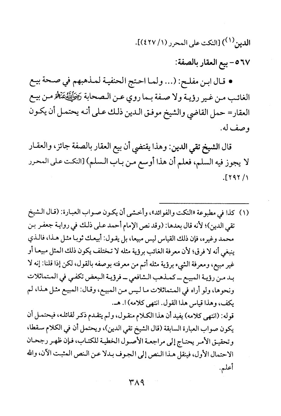 قوله: (انتهى كلامه) يفيد أن هذا الكلام منقول، ولم يتقدم ذكر لقائله، فيحتمل أن يكون صواب العبارة السابقة (قال الشيخ تقي الدين)، ويحتمل أن في الكلام سقطا، وتحقيق الأمر يحتاج إلى مراجعة الأصول الخطية للكتاب، فإن ظهر رجحان الاحتمال الأول، فينقل هذا النص إلى الجوف بدلا عن النص المثبت الآن، والله أعلم.