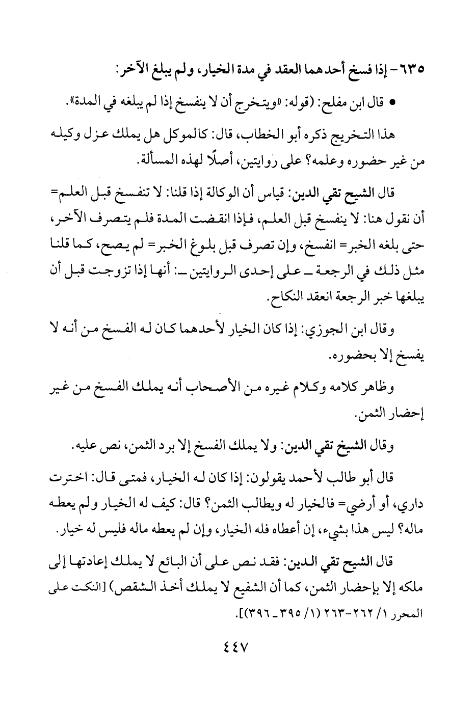 635 - إذا فسخ أحدهما العقد في مدة الخيار، ولم يبلغ الآخر: