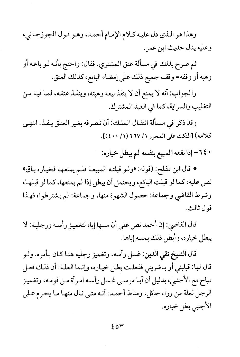 640 - إذا نفعه المبيع بنفسه لم يبطل خياره:
