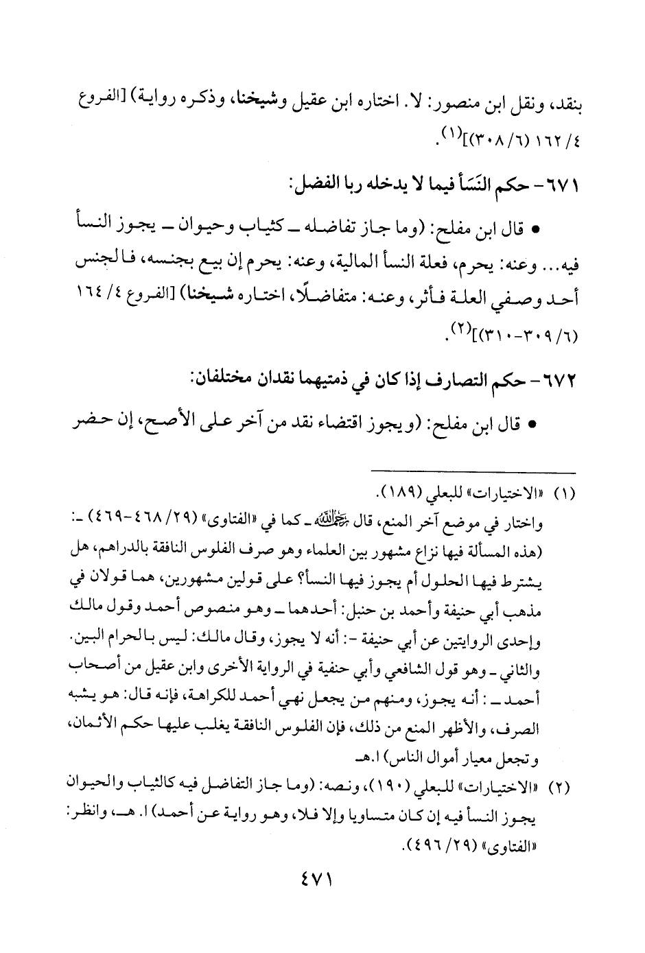 (¬2) "الاختيارات" للبعلي (190)، ونصه: (وما جاز التفاضل فيه كالثياب والحيوان يجوز النسأ فيه إن كان متساويا وإلا فلا، وهو رواية عن أحمد) ا. هـ، وانظر: "الفتاوى" (29/ 496).