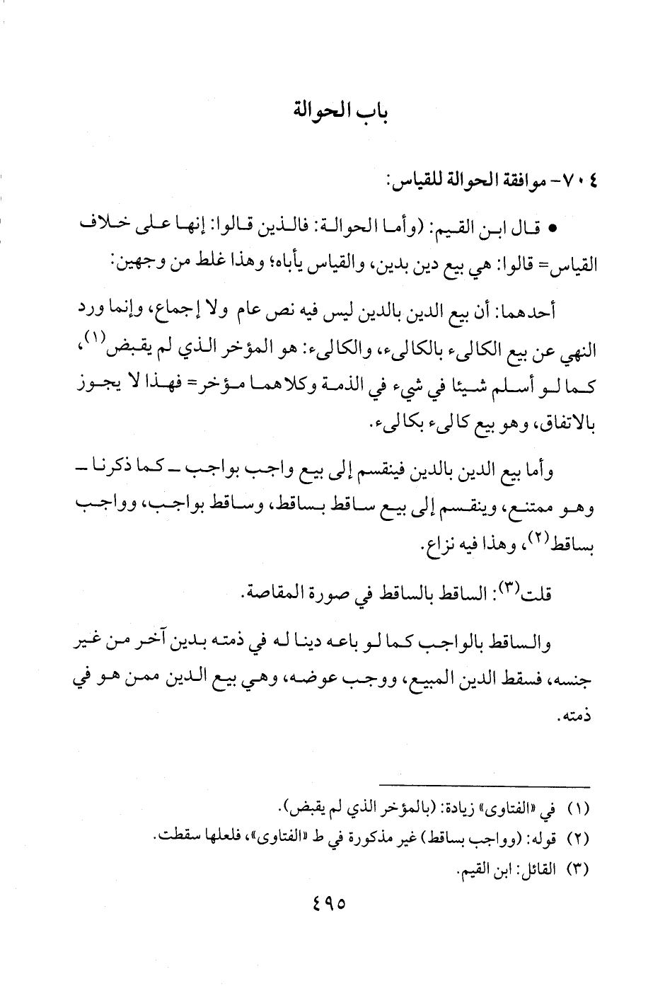 • قال ابن القيم: (وأما الحوالة: فالذين قالوا: إنها على خلاف القياس = قالوا: هي بيع دين بدين، والقياس يأباه، وهذا غلط من وجهين: