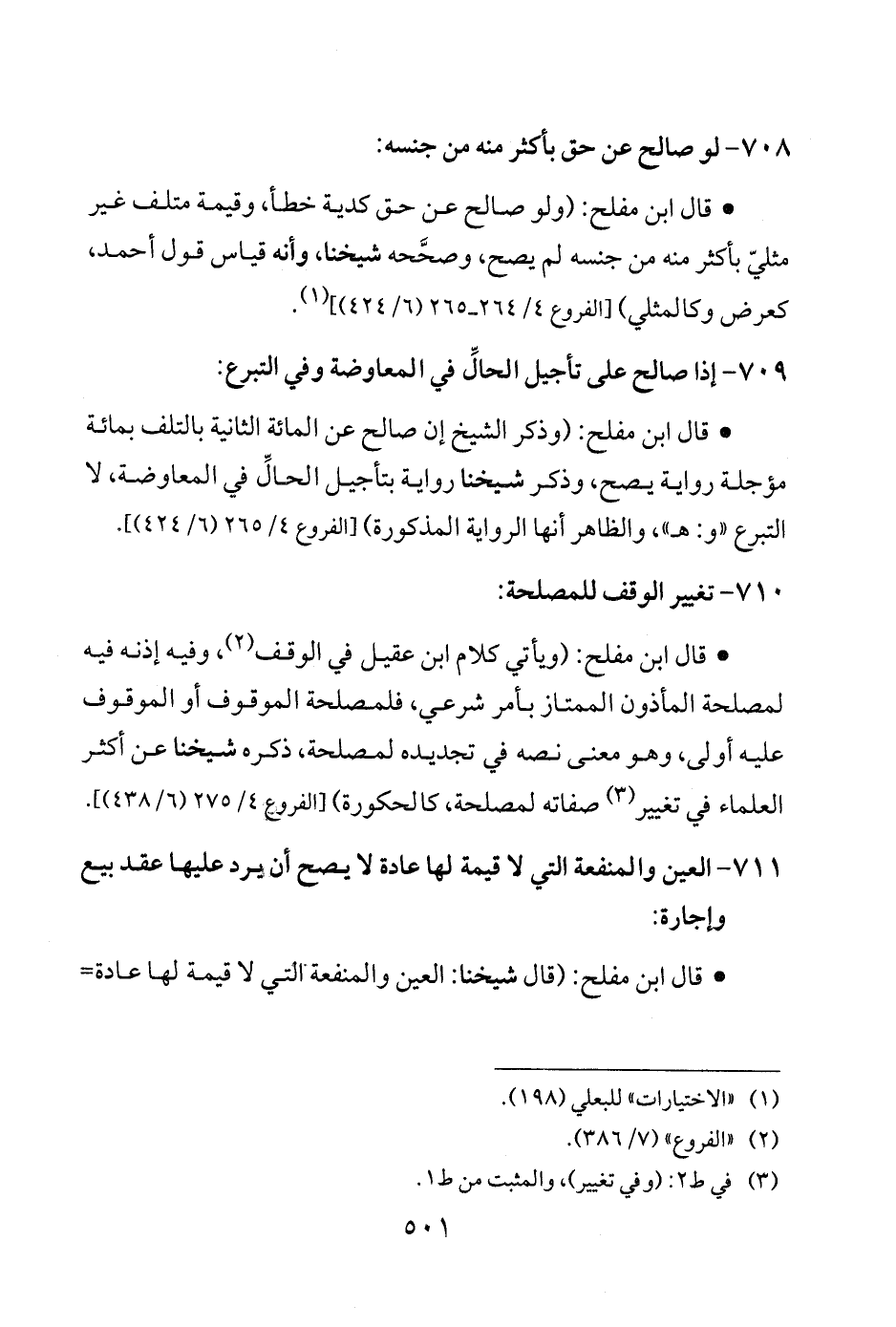 • قال ابن مفلح: (ويأتي كلام ابن عقيل في الوقف (¬2)، وفيه إذنه فيه لمصلحة المأذون الممتاز بأمر شرعي، فلمصلحة الموقوف أو الموقوف عليه أولى، وهو معنى نصه في تجديده لمصلحة، ذكره شيخنا عن أكثر العلماء في تغيير (¬3) صفاته لمصلحة، كالحكورة) [الفروع 4/ 275 (6/ 438)].