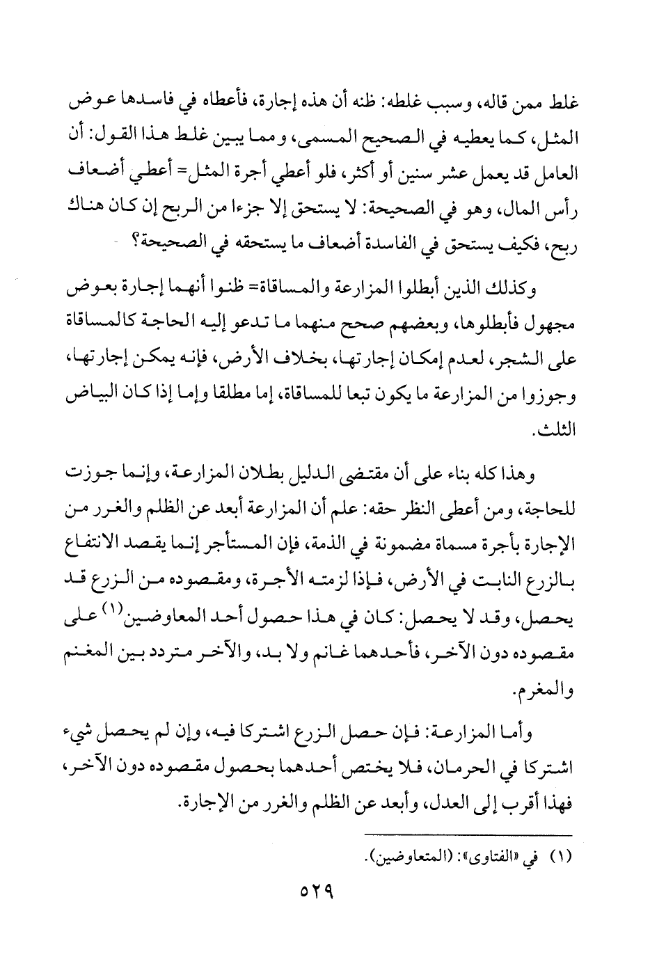 وكذلك الذين أبطلوا المزارعة والمساقاة = ظنوا أنهما إجارة بعوض مجهول فأبطلوها، وبعضهم صحح منهما ما تدعو إليه الحاجة كالمساقاة على الشجر، لعدم إمكان إجارتها، بخلاف الأرض، فإنه يمكن إجارتها، وجوزوا من المزارعة ما يكون تبعا للمساقاة، إما مطلقا وإما إذا كان البياض الثلث.