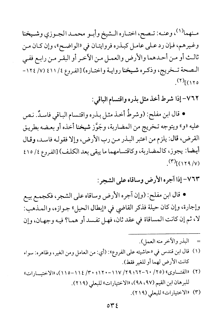 • قال ابن مفلح: (وشرطُ أخذ مثل بذره واقتسام الباقي فاسدٌ. نص عليه "و" ويتوجه تخريج من المضاربة، وجَوَّز شيخنا أخذه أو بعضه بطريق القرض، قال: يلزم من اعتبر البذر من رب الأرض، وإلا فقوله فاسد، وقال أيضًا: يجوز، كالمضاربة، وكاقتسامهما ما يبقى بعد الكلف) [الفروع 4/ 415 (7/ 129)] (¬3).
