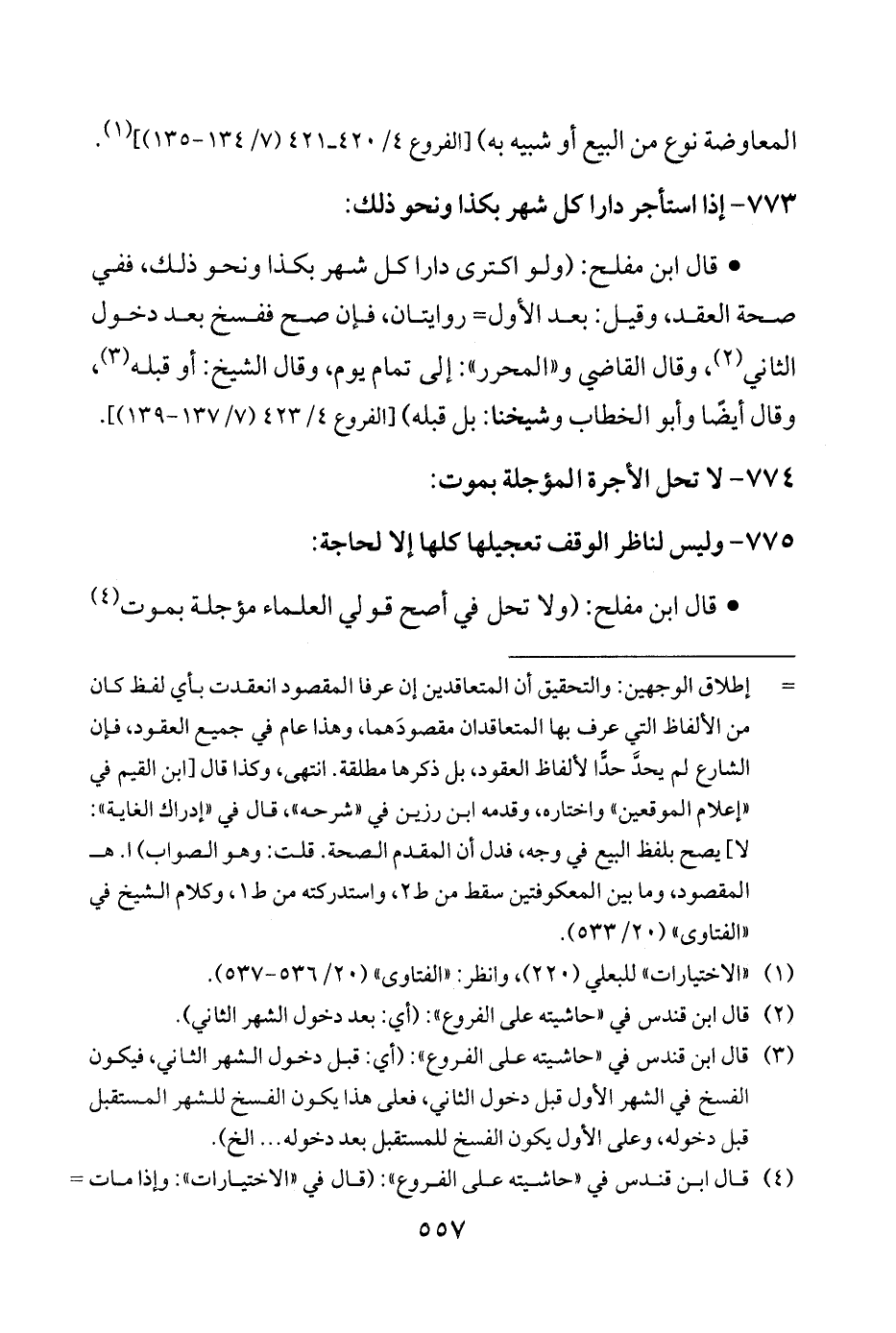 (¬3) قال ابن قندس في "حاشيته على الفروع": (أي: قبل دخول الشهر الثاني، فيكون الفسخ في الشهر الأول قبل دخول الثاني، فعلى هذا يكون الفسخ للشهر المستقبل قبل دخوله، وعلى الأول يكون الفسخ للمستقبل بعد دخوله ... الخ).