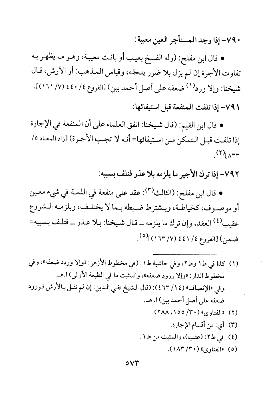 • قال ابن القيم: (قال شيخنا: اتفق العلماء على أن المنفعة في الإجارة إذا تلفت قبل التمكن من استيفائها = أنَّه لا تجب الأجرة) [زاد المعاد 5/ 833] (¬2).