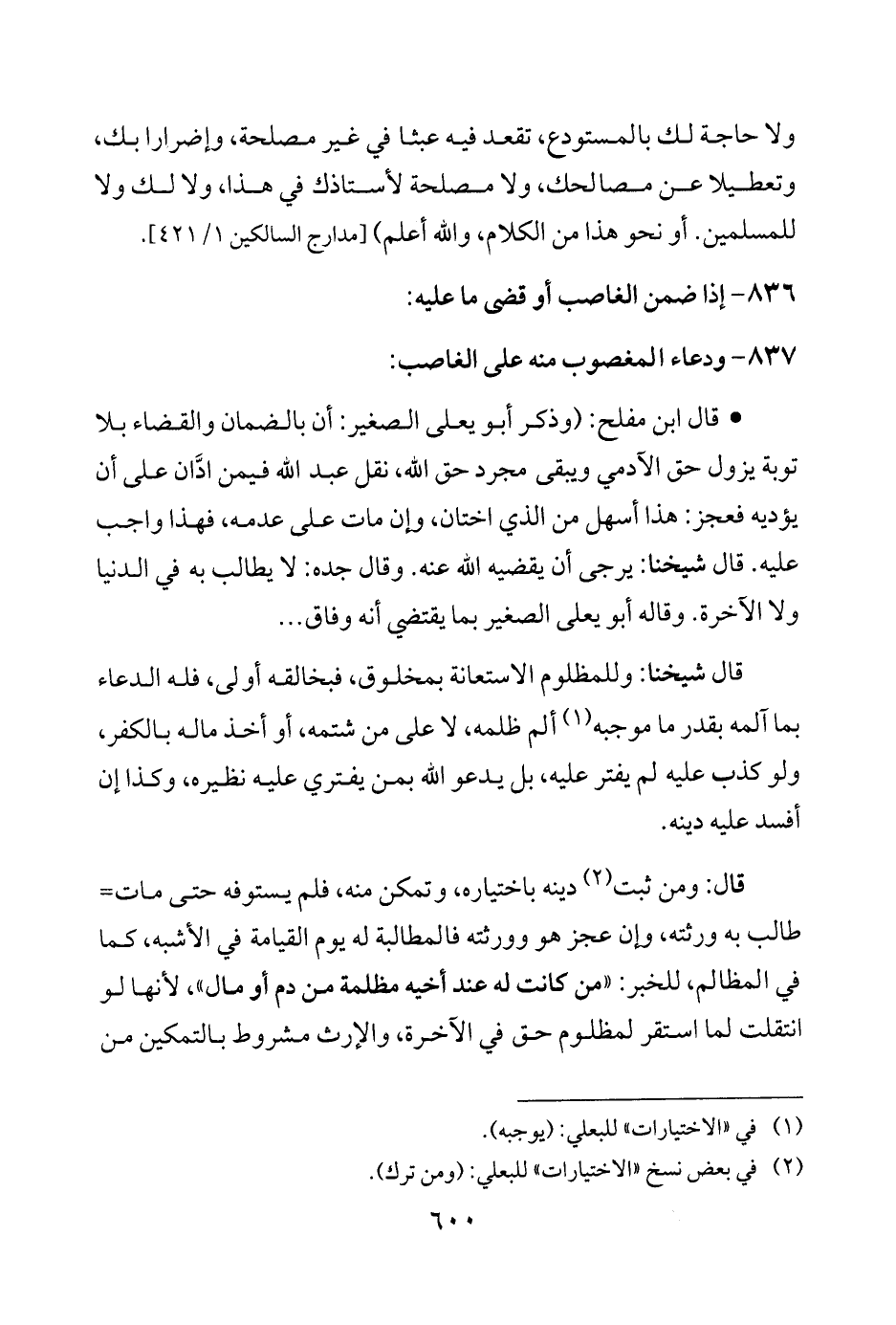 837 - ودعاء المغصوب منه على الغاصب: