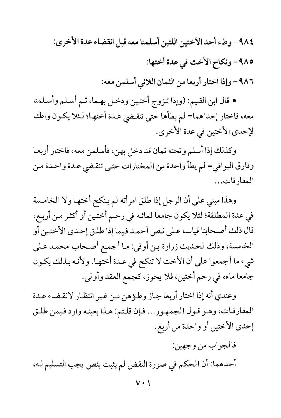984 - وطء أحد الأختين اللتين أسلمتا معه قبل انقضاء عدة الأخرى: