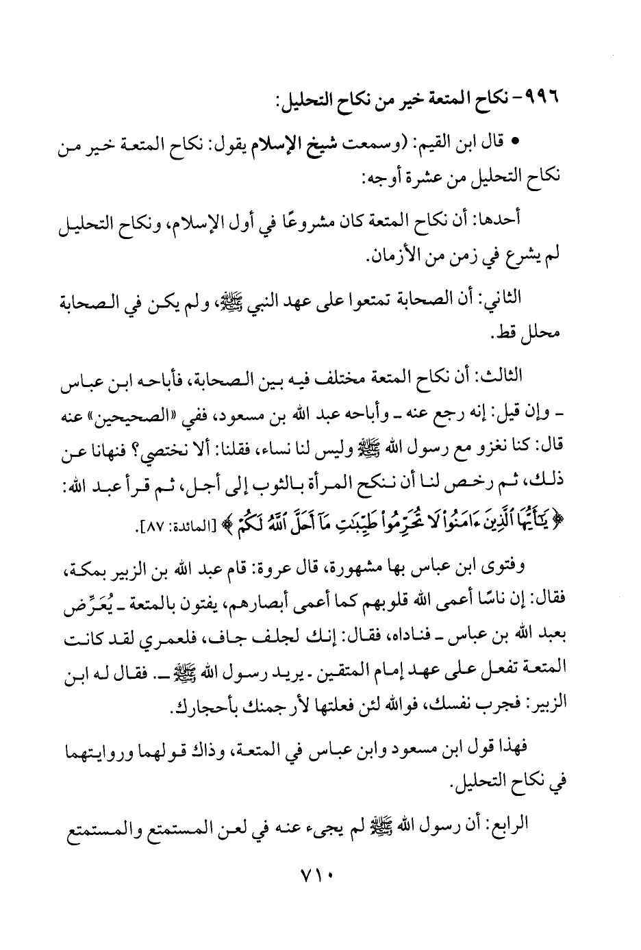 * قال ابن القيم: (وسمعت شيخ الإسلام يقول: نكاح المتعة خير من نكاح التحليل من عشرة أوجه: