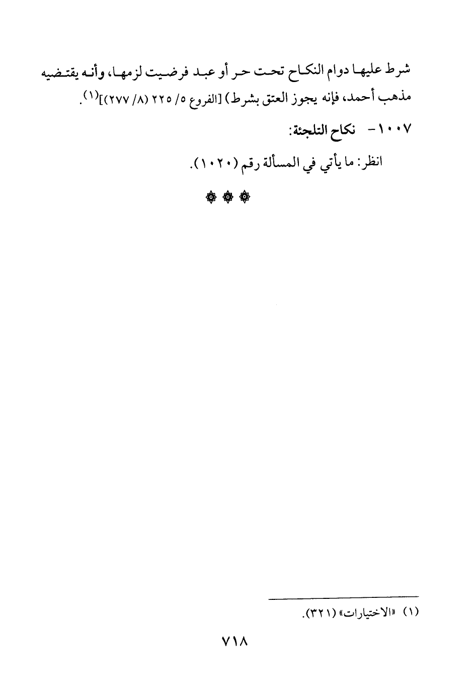 شرط عليها دوام النكاح تحت حر أو عبد فرضيت لزمها، وأنه يقتضيه مذهب أحمد، فإنه يجوز العتق بشرط) [الفروع 5/ 225 (8/ 277)] (¬1).