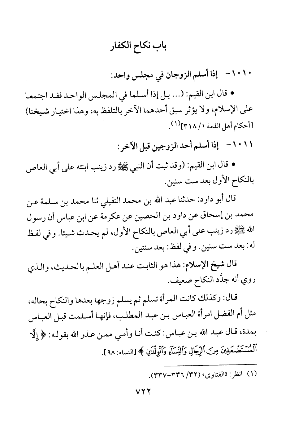 1011 - إذا أسلم أحد الزوجين قبل الآخر: