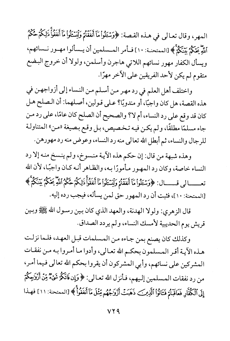 واختلف أهل العلم في رد مهر من أسلم من النساء إلى أزواجهن في هذه القصة، هل كان واجبًا، أو مندوبًا؟ على قولين، أصلهما: أن الصلح هل كان قد وقع على رد النساء، أم لا؟ والصحيح أن الصلح كان عامًا، على رد من جاء مسلمًا مطلقًا، ولم يكن فيه تخصيص، بل وقع بصيغة "من" المتناولة للرجال والنساء، ثم أبطل الله تعالى منه رد النساء، وعوض منه رد مهورهن.