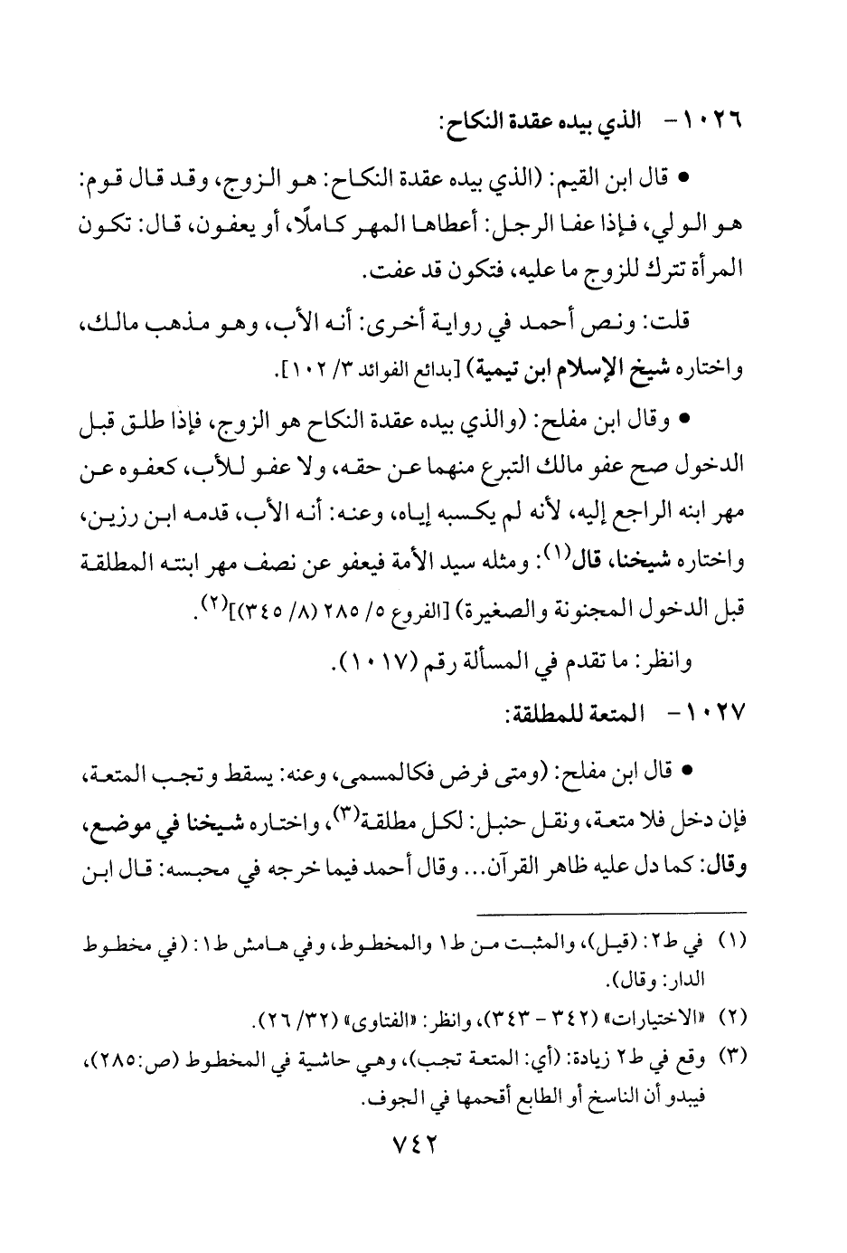 (¬3) وقع في ط 2 زيادة: (أي: المتعة تجب)، وهي حاشية في المخطوط (ص: 285)، فيبدو أن الناسخ أو الطابع أقحمها في الجوف.