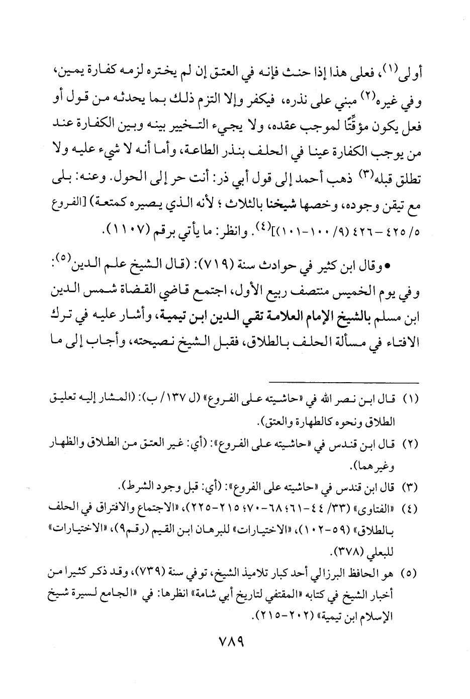 (¬4) "الفتاوى" (33/ 44 - 61؛ 68 - 70؛ 215 - 225)، "الاجتماع والافتراق في الحلف بالطلاق" (59 - 102)، "الاختيارات" للبرهان ابن القيم (رقم 9)، "الاختيارات" للبعلي (378).