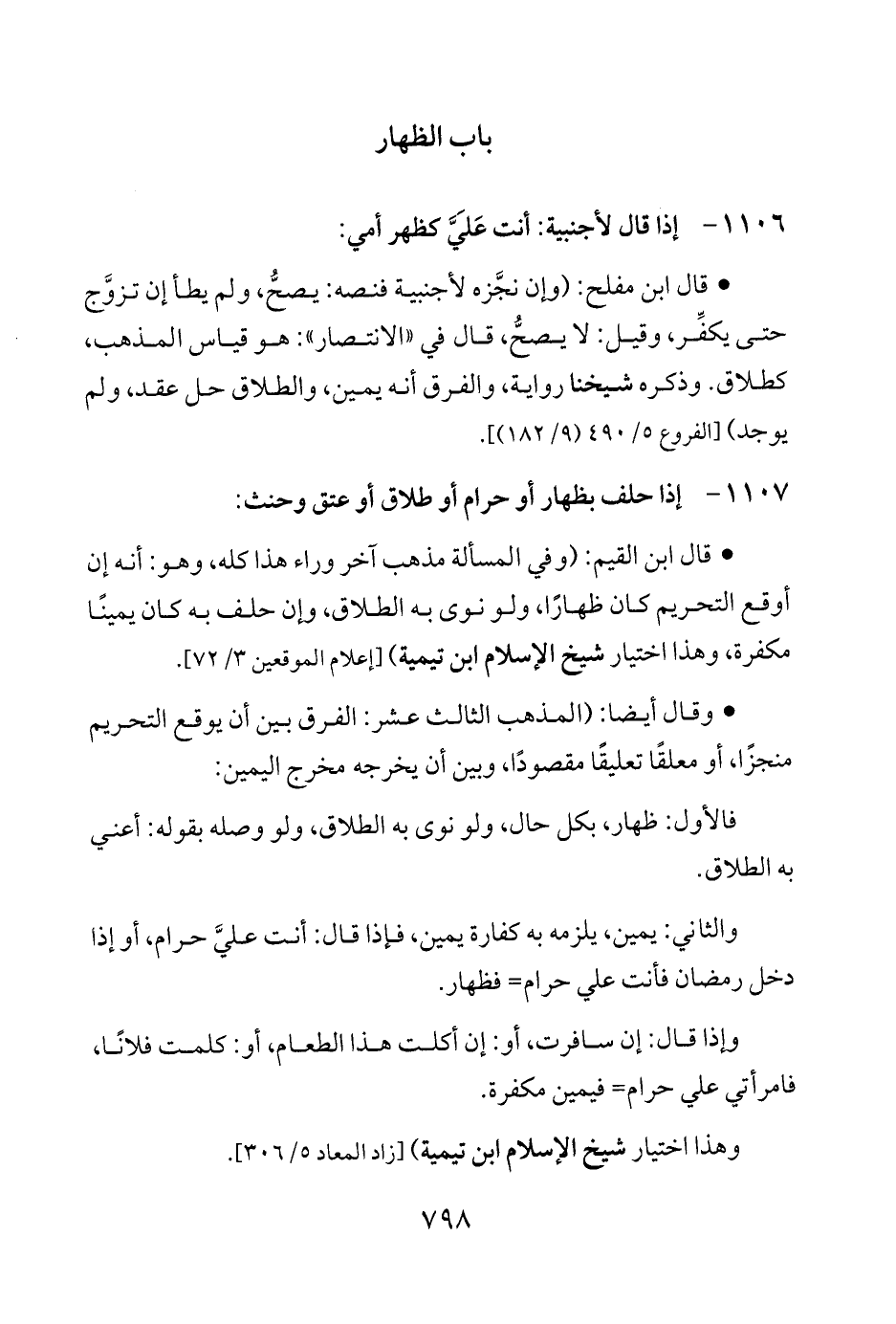 1107 - إذا حلف بظهار أو حرام أو طلاق أو عتق وحنث: