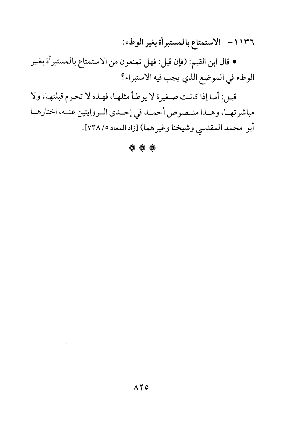 1136 - الاستمتاع بالمستبرأة بغير الوطء: