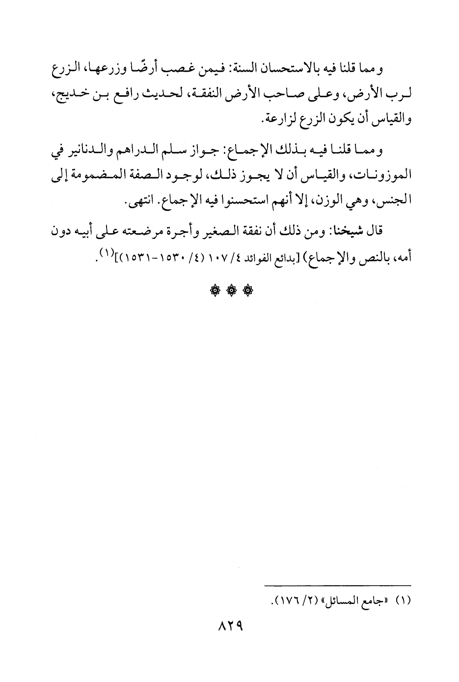 قال شيخنا: ومن ذلك أن نفقة الصغير وأجرة مرضعته على أبيه دون أمه، بالنص والإجماع) [بدائع الفوائد 4/ 107 (4/ 1530 - 1531)] (¬1).