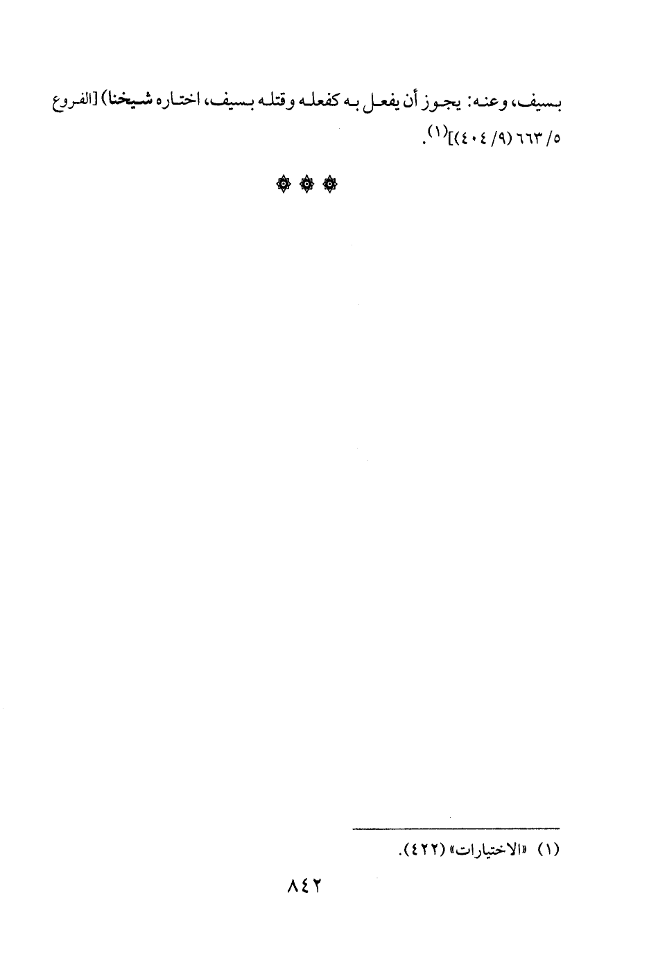 بسيف، وعنه: يجوز أن يفعل به كفعله وقتله بسيف، اختاره شيخنا) [الفروع 5/ 663 (9/ 404)] (¬1).