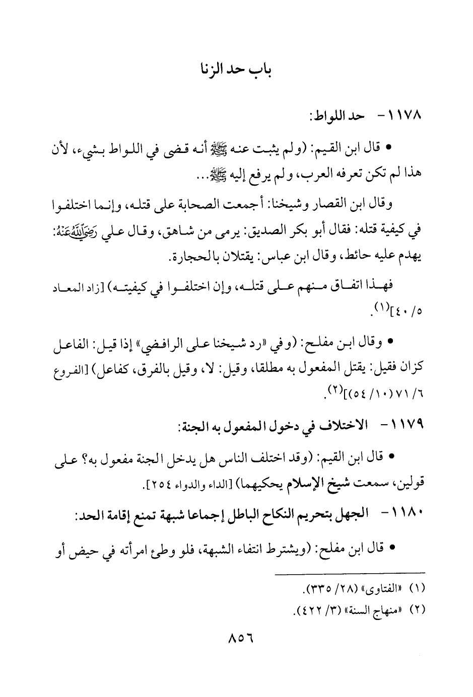 • وقال ابن مفلح: (وفي "رد شيخنا على الرافضي" إذا قيل: الفاعل كزان فقيل: يقتل المفعول به مطلقا، وقيل: لا، وقيل بالفرق، كفاعل) [الفروع 6/ 71 (10/ 54)] (¬2).