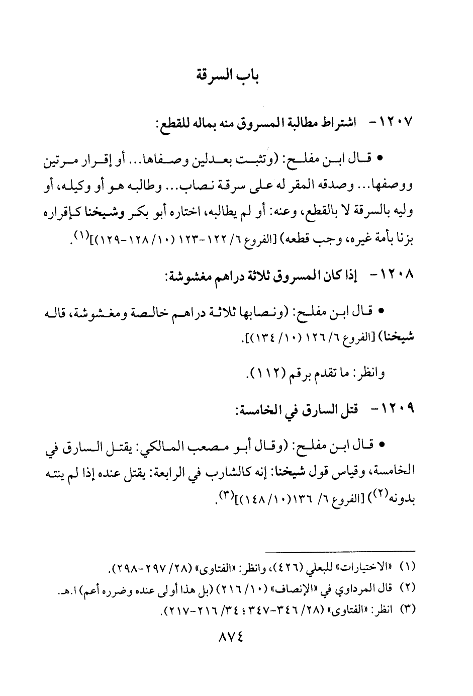 • قال ابن مفلح: (وقال أبو مصعب المالكي: يقتل السارق في الخامسة، وقياس قول شيخنا: إنه كالشارب في الرابعة: يقتل عنده إذا لم ينته بدونه) (¬2) [الفروع 6/ 136 (10/ 148)] (¬3).