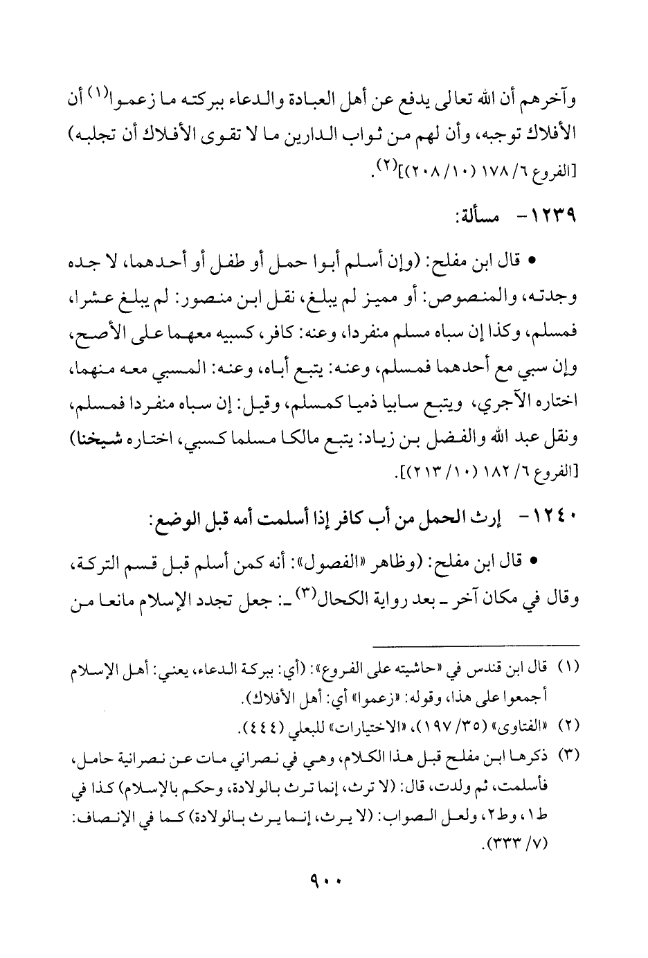 (¬3) ذكرها ابن مفلح قبل هذا الكلام، وهي في نصراني مات عن نصرانية حامل، فأسلمت، ثم ولدت، قال: (لا ترث، إنما ترث بالولادة، وحكم بالإسلام) كذا في ط 1، وط 2، ولعل الصواب: (لا يرث، إنما يرث بالولادة) كما في الإنصاف: (7/ 333).