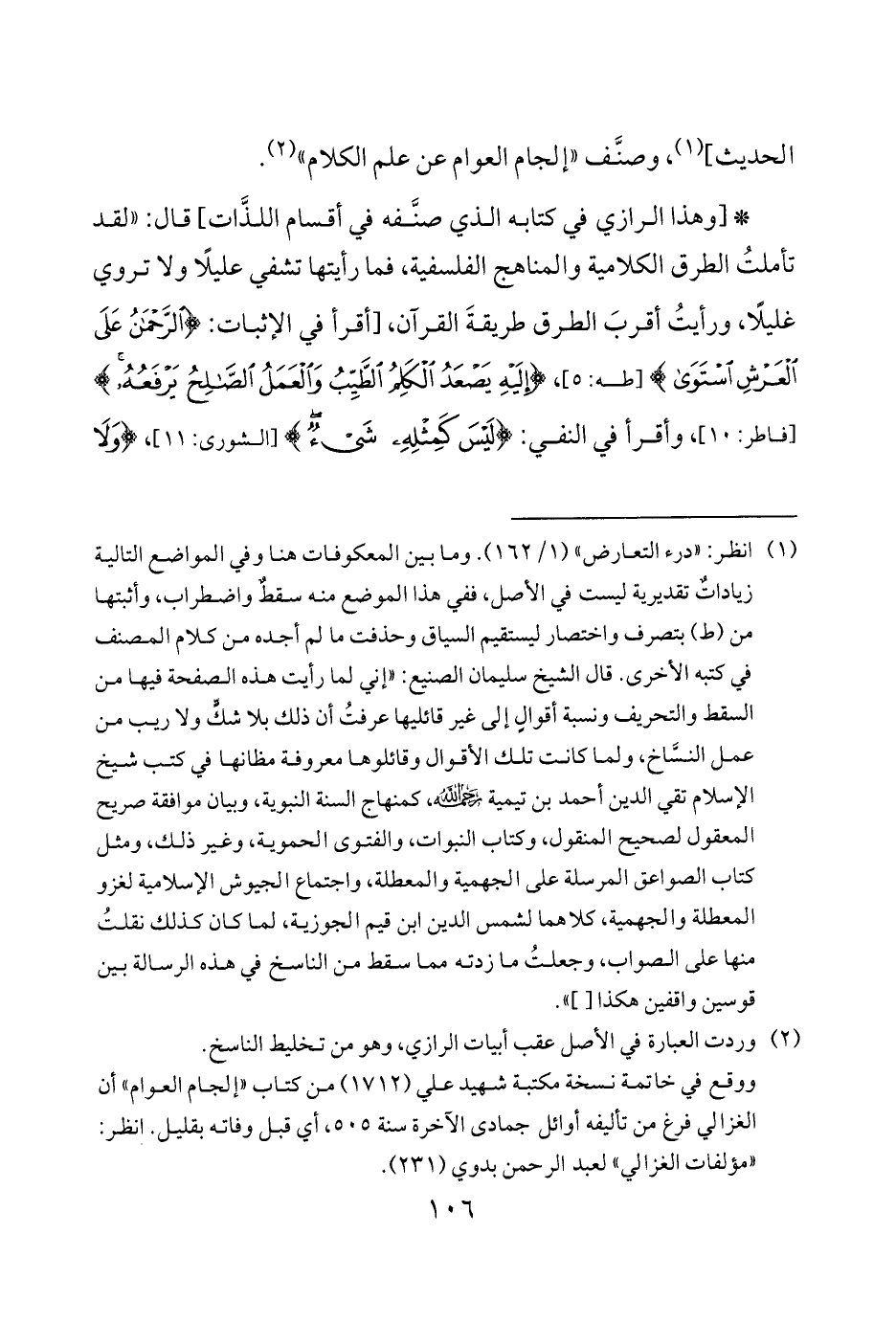 الحديث] 1 وصنَّف إلجام العوام عن علم الكلام 2.