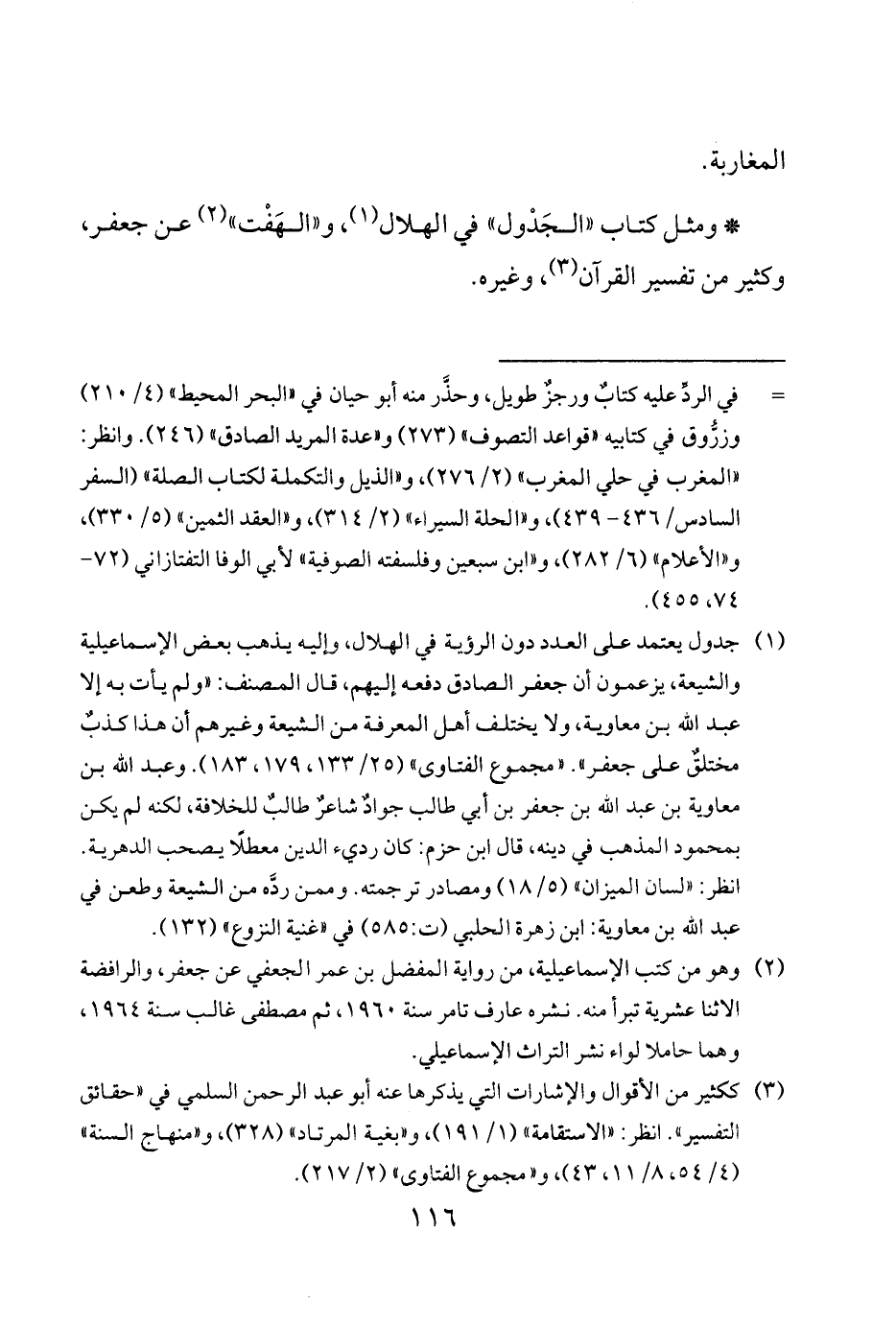 * ومثل كتاب الجَدْول في الهلال 1 و الهَفْت 2 عن جعفر وكثير من تفسير القرآن 3 وغيره.