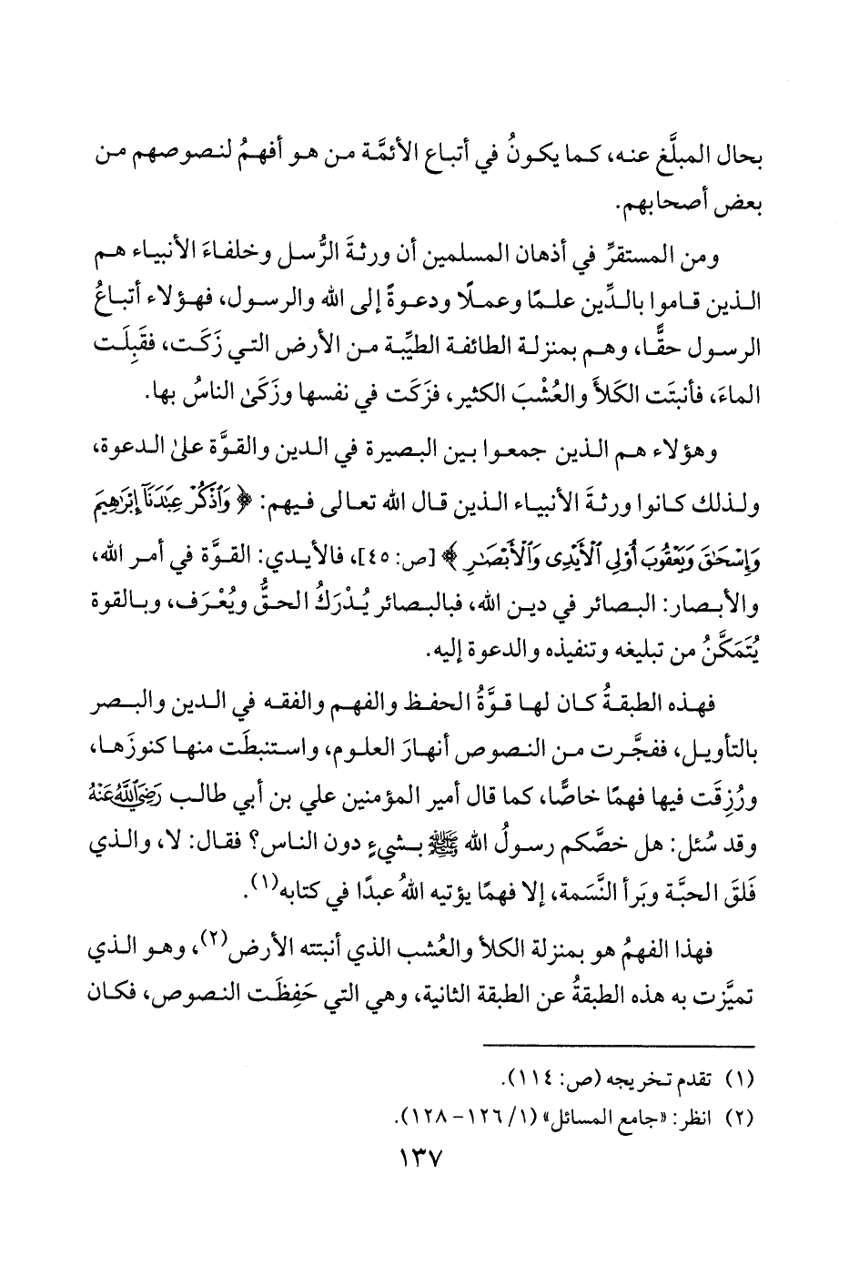 فهذا الفهمُ هو بمنزلة الكلأ والعُشب الذي أنبتته الأرض 2 وهو الذي تميَّزت به هذه الطبقةُ عن الطبقة الثانية وهي التي حَفِظَت النصوص فكان