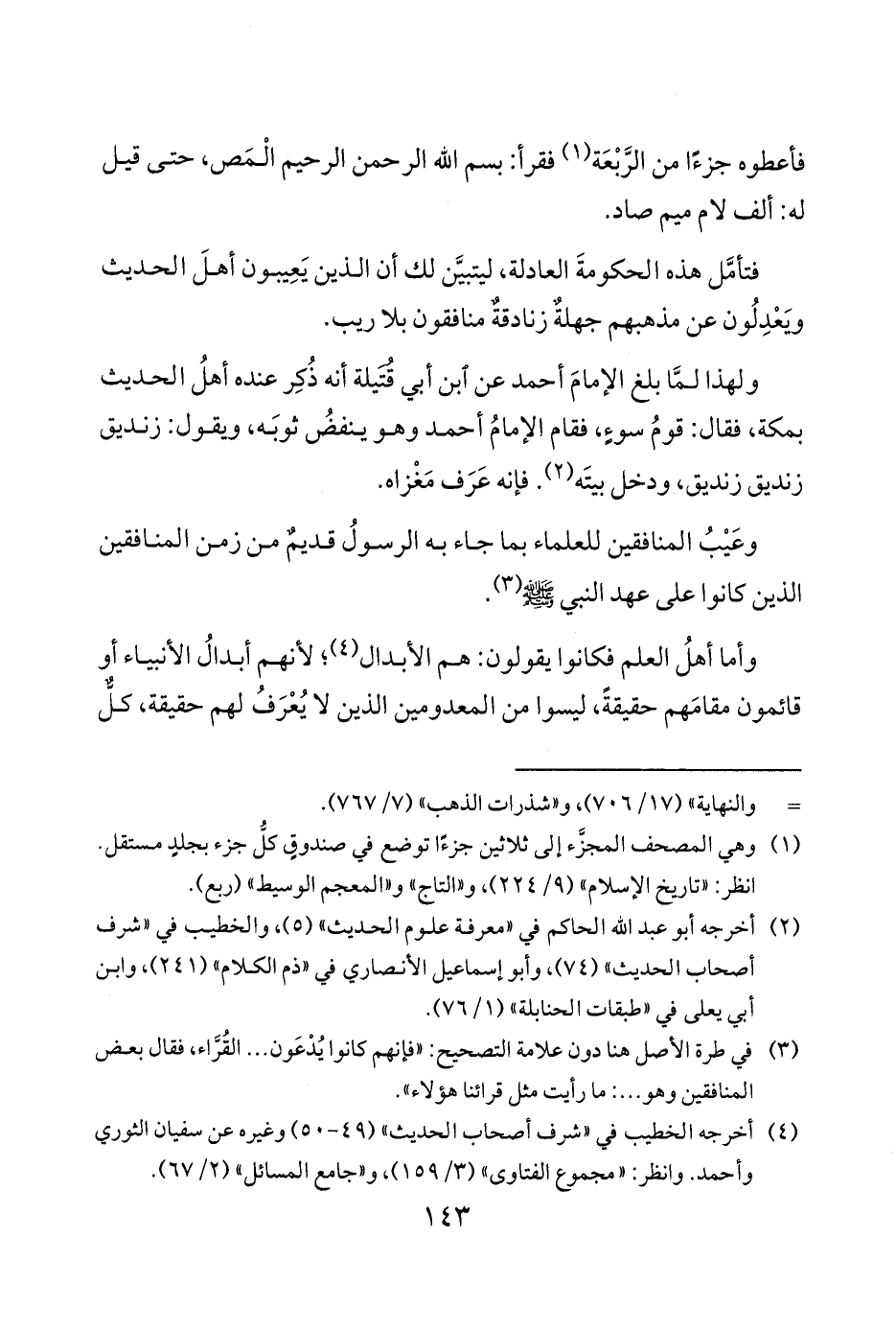 فتأمَّل هذه الحكومةَ العادلة ليتبيَّن لك أن الذين يَعِيبون أهلَ الحديث ويَعْدِلُون عن مذهبهم جهلةٌ زنادقةٌ منافقون بلا ريب.