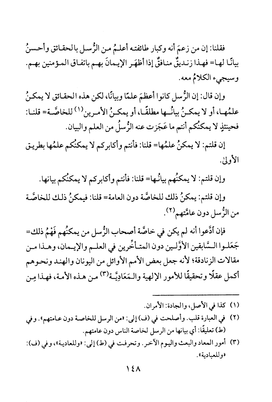 وإن قلتم يمكنُ ذلك للخاصَّة دون العامة قلنا فيمكنُ ذلك للخاصَّة من الرُّسل دون عامَّتهم 2.
