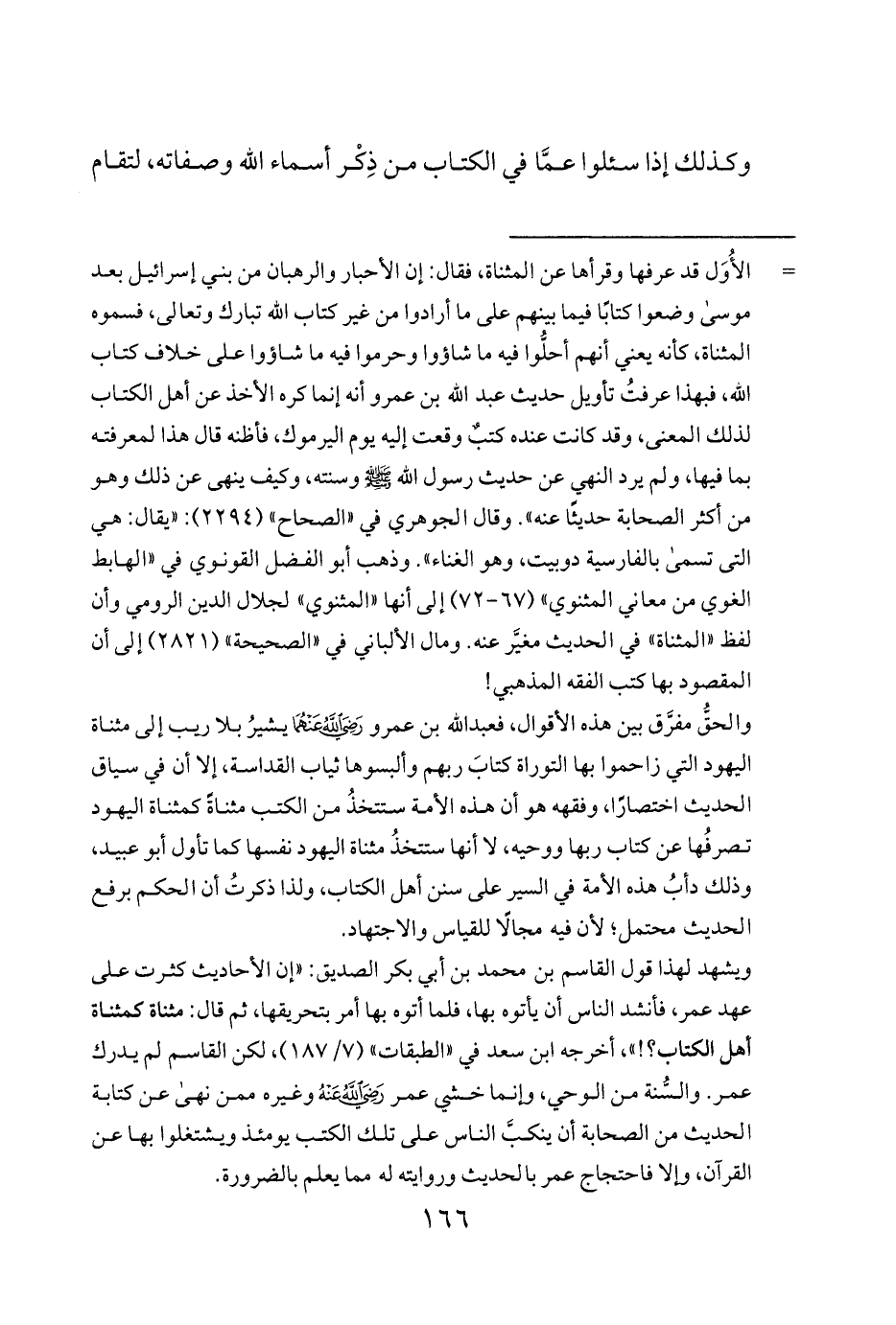 وكذلك إذا سئلوا عمَّا في الكتاب من ذِكْر أسماء الله وصفاته لتقام