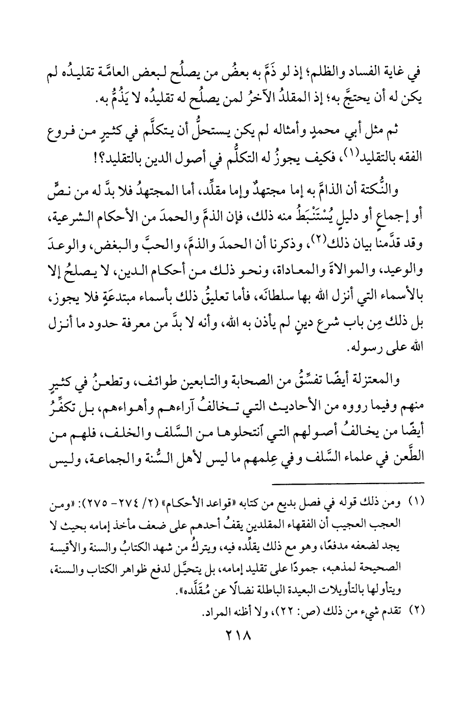 ثم مثل أبي محمدٍ وأمثاله لم يكن يستحلُّ أن يتكلَّم في كثيرٍ من فروع الفقه بالتقليد 1 فكيف يجوزُ له التكلُّم في أصول الدين بالتقليد؟!
