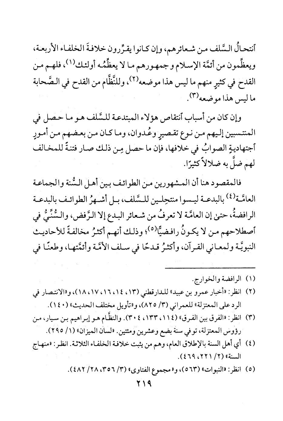 انتحالُ السَّلف من شعائرهم وإن كانوا يقرِّرون خلافةَ الخلفاء الأربعة ويعظِّمون من أئمَّة الإسلام وجمهورهم ما لا يعظِّمُه أولئك 1 فلهم من القدح في كثيرٍ منهم ما ليس هذا موضعه 2 وللنَّظَّام من القدح في الصَّحابة ما ليس هذا موضعه 3.