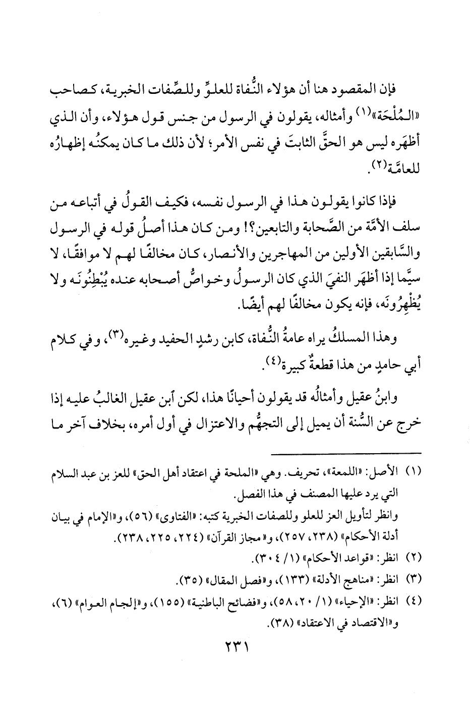 وهذا المسلكُ يراه عامةُ النُّفاة كابن رشدٍ الحفيد وغيره 3 وفي كلام أبي حامدٍ من هذا قطعةٌ كبيرة 4.