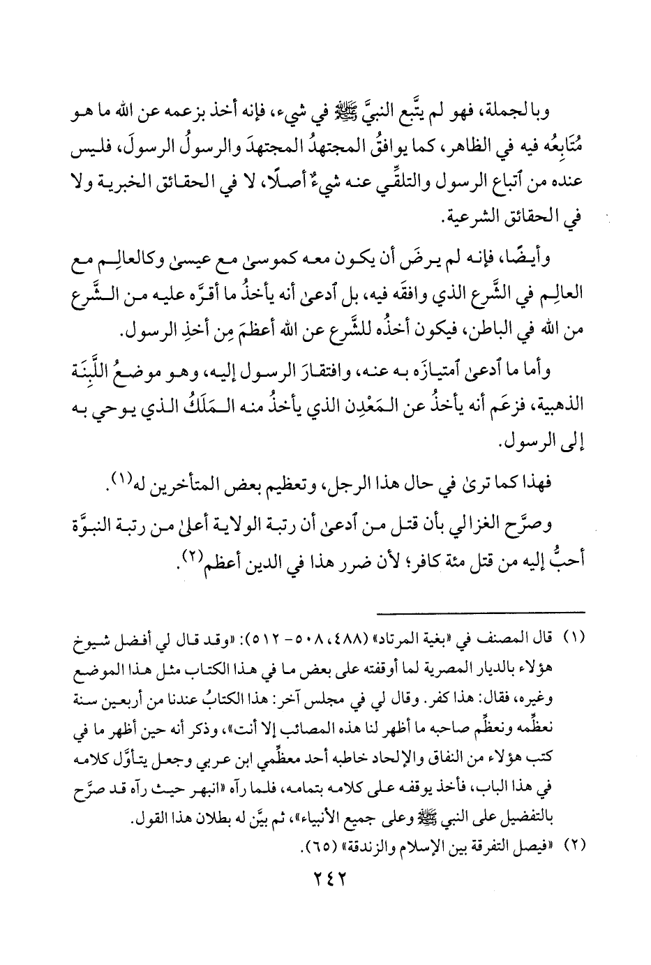 وصرَّح الغزالي بأن قتل من ادعى أن رتبة الولاية أعلى من رتبة النبوَّة أحبُّ إليه من قتل مئة كافر لأن ضرر هذا في الدين أعظم 2.