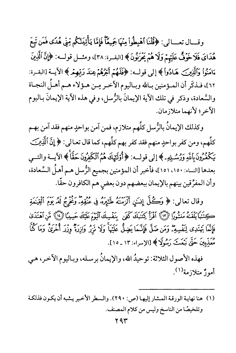 فهذه الأصول الثلاثة توحيدُ الله والإيمانُ برسله وباليوم الآخر هي أمورٌ متلازمة 1.