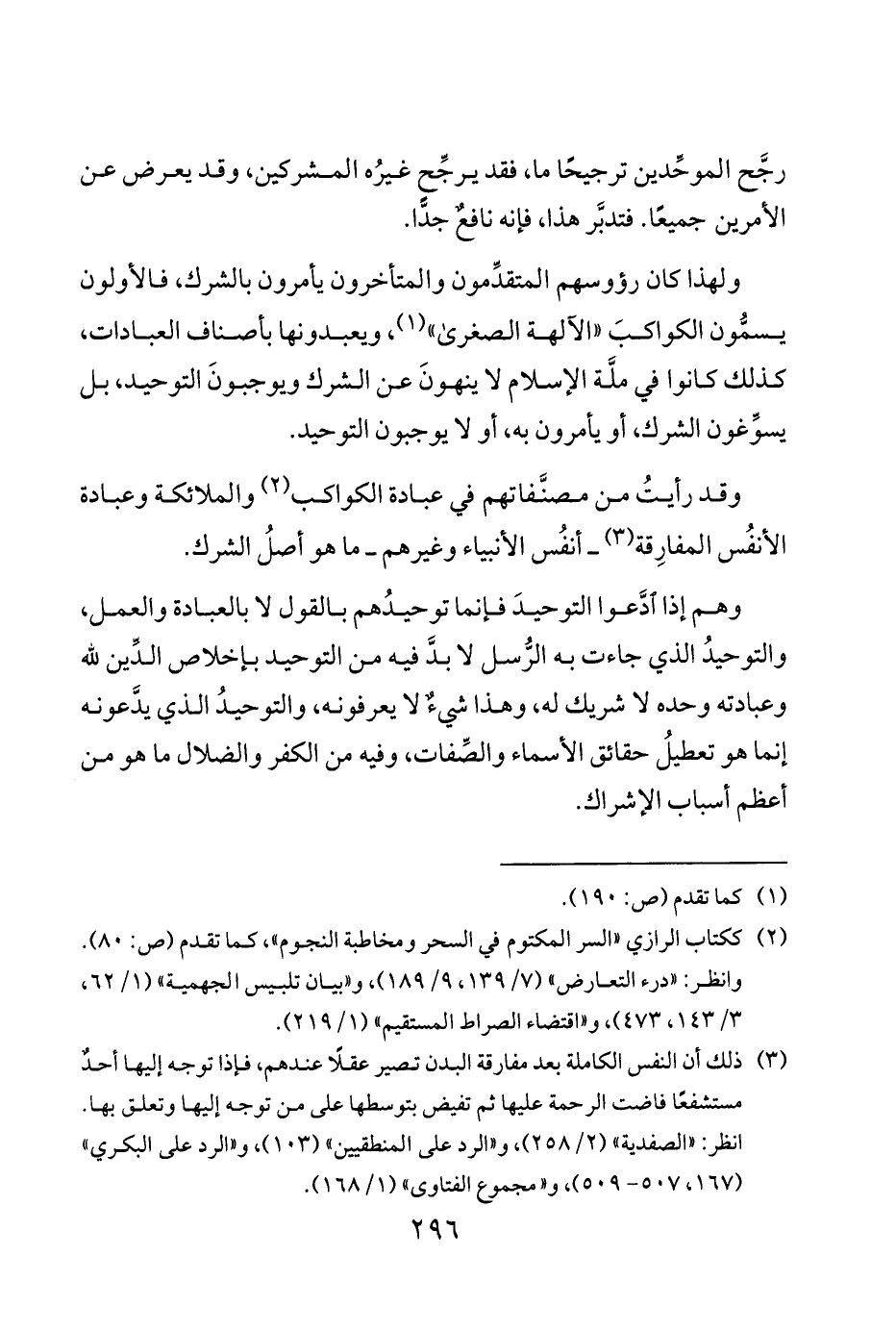 وقد رأيتُ من مصنَّفاتهم في عبادة الكواكب 2 والملائكة وعبادة الأنفُس المفارِقة 3 أنفُس الأنبياء وغيرهم ما هو أصلُ الشرك.