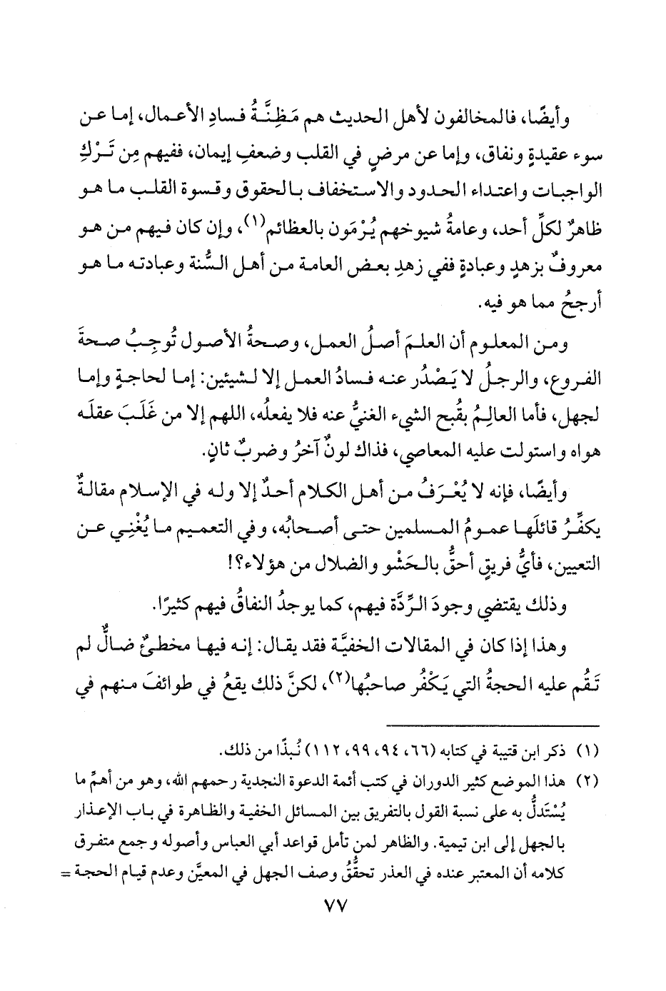 وهذا إذا كان في المقالات الخفيَّة فقد يقال إنه فيها مخطئٌ ضالٌّ لم تَقُم عليه الحجةُ التي يَكْفُر صاحبُها 2 لكنَّ ذلك يقعُ في طوائفَ منهم في