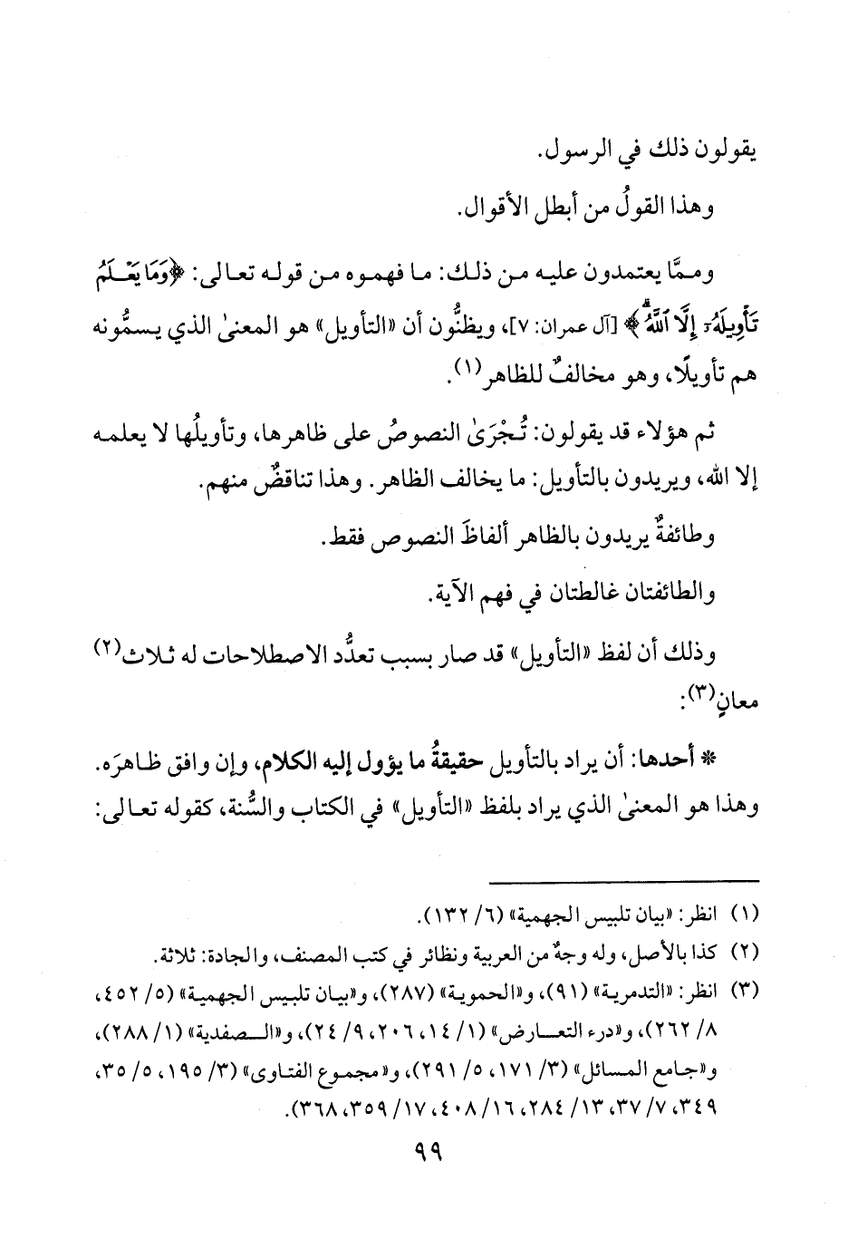 وذلك أن لفظ التأويل قد صار بسبب تعدُّد الاصطلاحات له ثلاث 2 معانٍ 3: