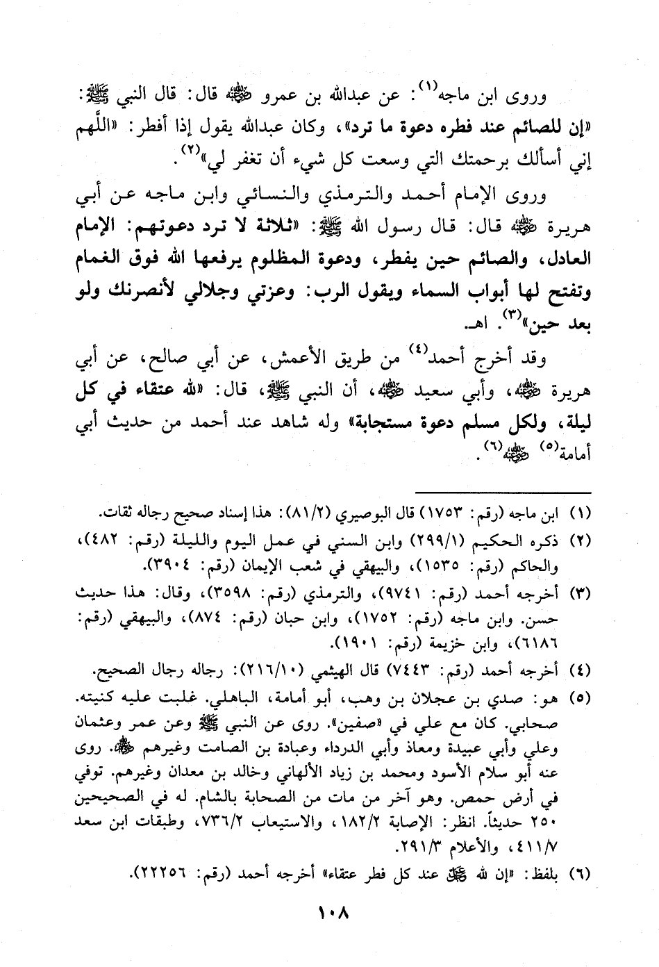 (¬6) بلفظ: «إن لله - عز وجل - عند كل فطر عتقاء» أخرجه أحمد (رقم: 22256).