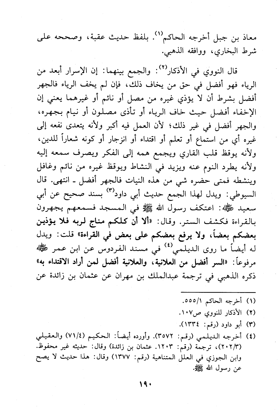 «السر أفضل من العلانية، والعلانية أفضل لمن أراد الاقتداء به» ذكره الذهبي في ترجمة عبد الملك بن مهران عن عثمان بن زائدة عن