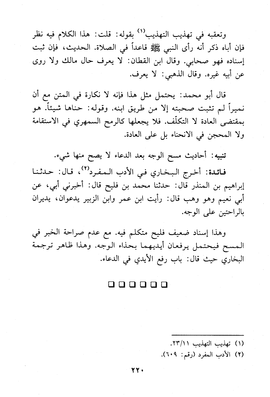 تنبيه: أحاديث مسح الوجه بعد الدعاء لا يصح منها شيء.