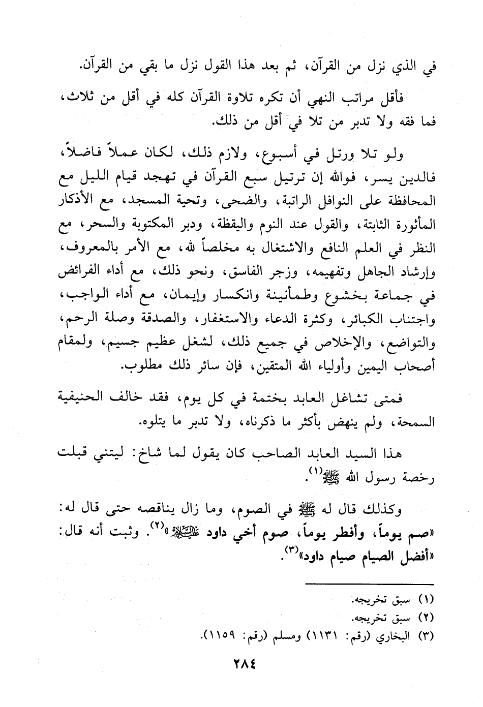 فمتى تشاغل العابد بختمة في كل يوم، فقد خالف الحنيفية السمحة، ولم ينهض بأكثر ما ذكرناه، ولا تدبر ما يتلوه.