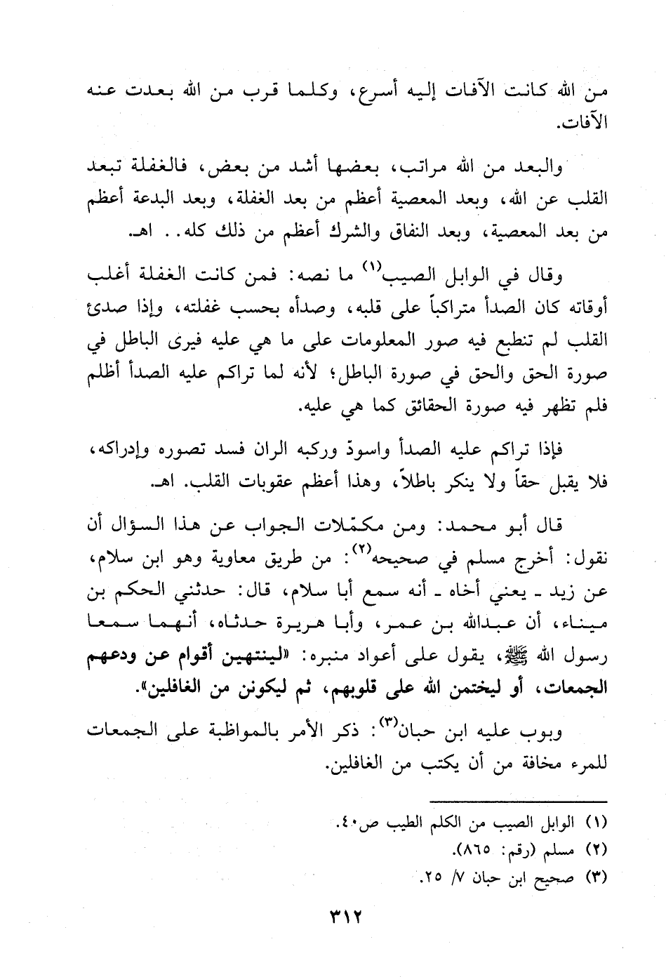 (¬1) الوابل الصيب من الكلم الطيب ص 40.