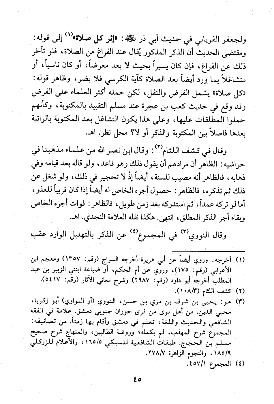 (¬3) هو: يحيى بن شر بن مري بن حسن، النووي (أو النواوي) أبو زكريا، محيي الدين. من أهل نوى من قرى حوران جنوبي دمشق. علامة في الفقه الشافعي والحديث واللغة، تعلم في دمشق وأقام بها زمنا. من تصانيفه: المجموع شرح المهذب، لم يكمله؛ وروضة الطالبين؛ والمنهاج شرح صحيح مسلم بن الحجاج. طبقات الشافعية للسبكي 5/ 165؛ والأعلام للزركلي 9/ 185؛ والنجوم الزاهرة 7/ 278.